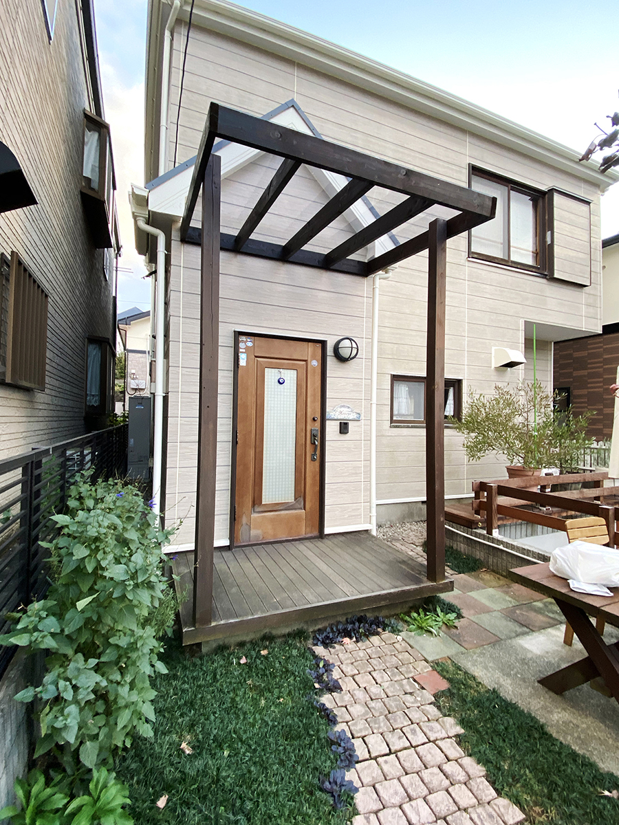 2020年8月 神奈川県中郡二宮町 H様邸のウッドデッキ新設、玄関ポーチ交換の施工事例を紹介します。