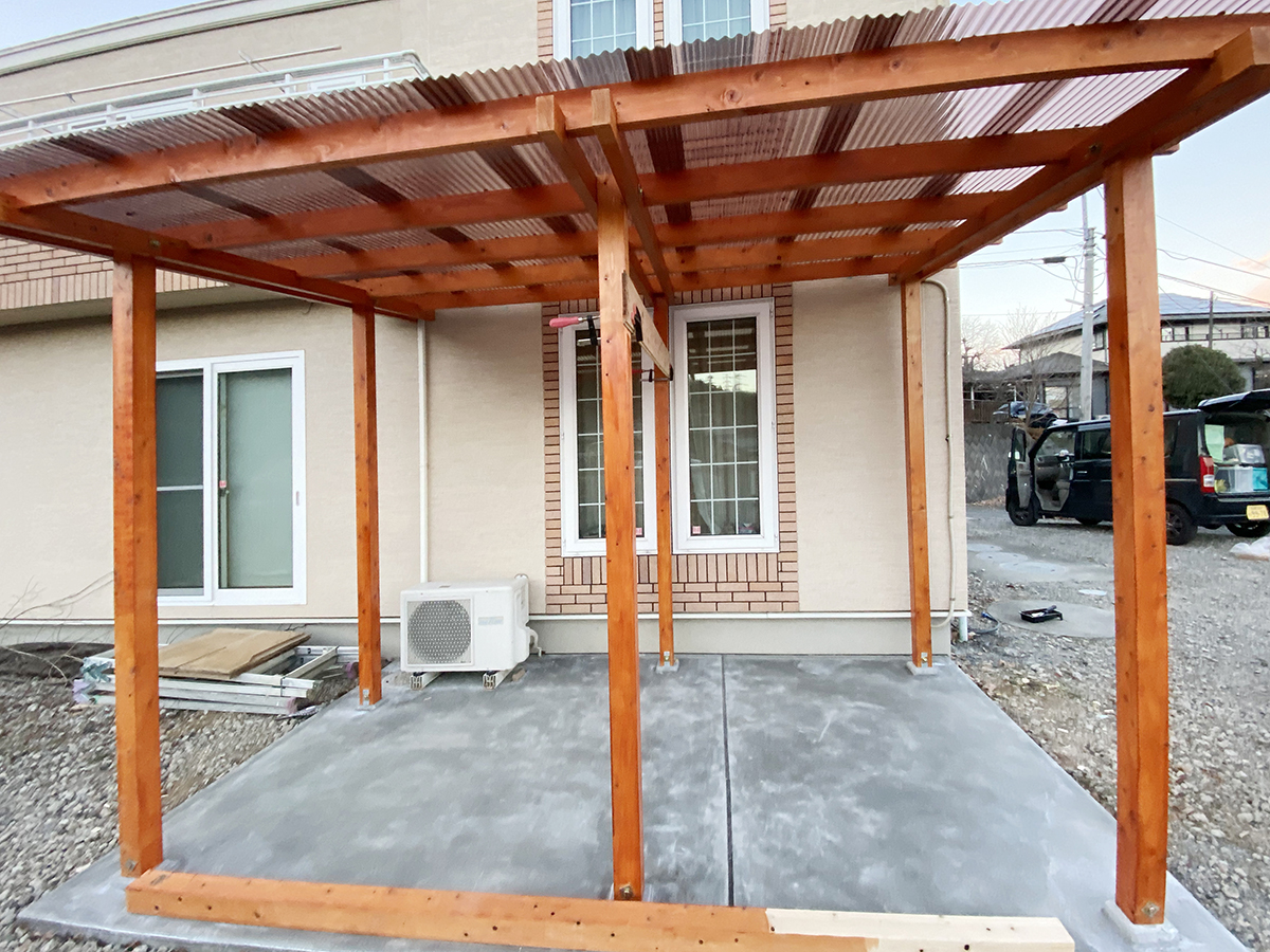 施工内容はバイクポート新設に伴う設計、施工を行いました。